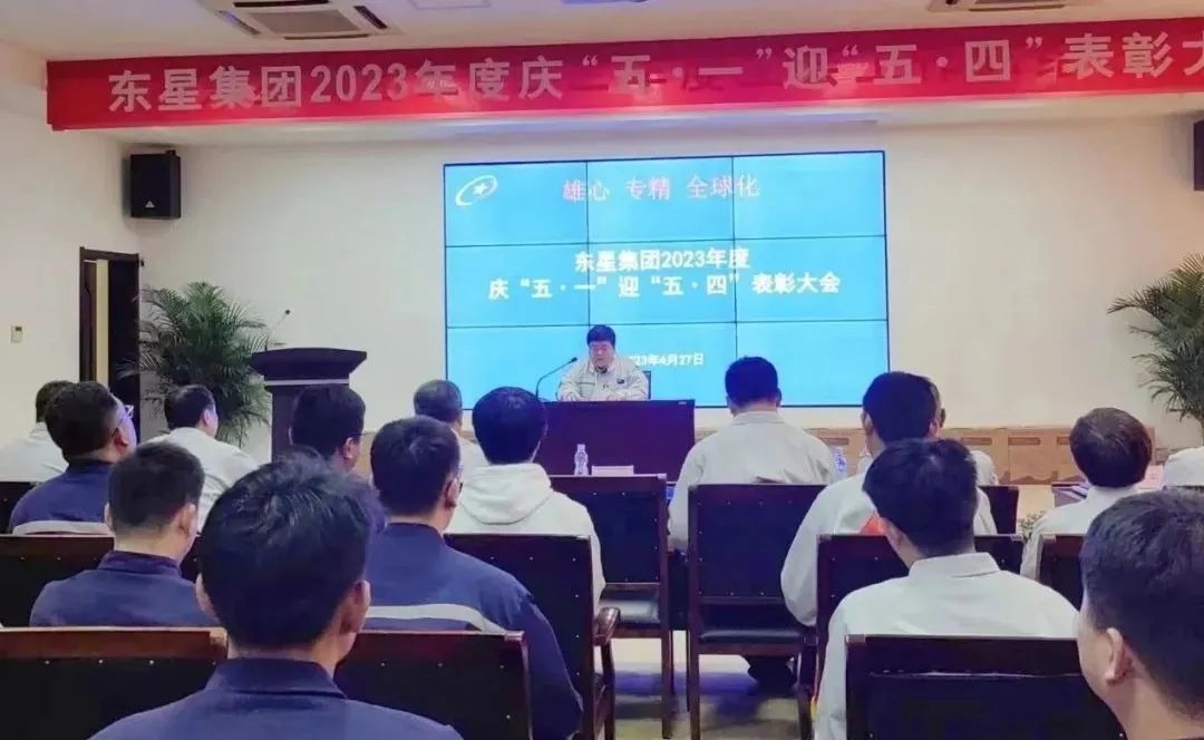 2023年4月27日下午,煙臺東星集團(tuán)有限公司2023年度慶“五·一”迎“五·四”表彰大會在集團(tuán)公司二樓會議廳舉行,集團(tuán)公司董事長、總經(jīng)理于大偉出席會議并講話。集團(tuán)公司副董事長、副總經(jīng)理厲強,集團(tuán)公司副總經(jīng)理陳剛、王建全,各制造部和經(jīng)營單位領(lǐng)導(dǎo)、分會主席以及所有獲獎人員共計80余人參會。