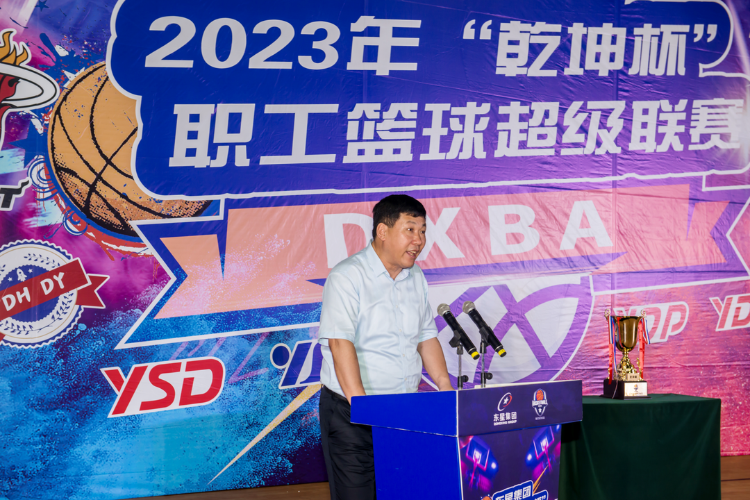 集團(tuán)公司董事長(zhǎng)、總經(jīng)理于大偉在致辭中向各參賽隊(duì)的運(yùn)動(dòng)員、教練員表示了熱烈的祝賀,向?yàn)橘愂陆M織、實(shí)施和保障做出突出貢獻(xiàn)的裁判員、工作人員以及各位熱心觀眾表示了衷心的感謝。于總指出,本屆“乾坤杯”職工籃球超級(jí)聯(lián)賽是常態(tài)化疫情防控以來(lái),集團(tuán)公司工會(huì)組織實(shí)施的規(guī)模最大、范圍最廣的一次體育賽事。10支球隊(duì)、100位運(yùn)動(dòng)員在20多場(chǎng)比賽中,昂揚(yáng)青春,揮灑激情,結(jié)下了深厚的友誼。比賽不但提振了人心,鼓舞了士氣,更涌現(xiàn)出了一批復(fù)合型人才和高水平團(tuán)隊(duì)。精彩的賽事,帶動(dòng)了基層員工自發(fā)加入體育鍛煉,追求健康向上的生活方式,是全民健身在東星落地生根的真實(shí)寫照。下一步,集團(tuán)公司還將持續(xù)推出各種類型的文體活動(dòng),著力打造東星文化品牌,持續(xù)提升員工的獲得感、歸屬感和幸福感,為集團(tuán)公司高質(zhì)量向前發(fā)展提供源源不斷的精神動(dòng)力!于總號(hào)召集團(tuán)公司廣大干部、職工,持續(xù)發(fā)揚(yáng)“爭(zhēng)創(chuàng)一流、敢于拼搏”的體育精神,以這次比賽為契機(jī),將活動(dòng)過程中激發(fā)出的團(tuán)隊(duì)意識(shí)和勇氣融入到日常工作中,銳意進(jìn)取,勇攀高峰,在“行動(dòng)2023、決戰(zhàn)2024、打贏三大戰(zhàn)役”的新征程上“摘金奪銀”,為實(shí)現(xiàn)“百年?yáng)|星”的偉大夢(mèng)想而不懈奮斗!