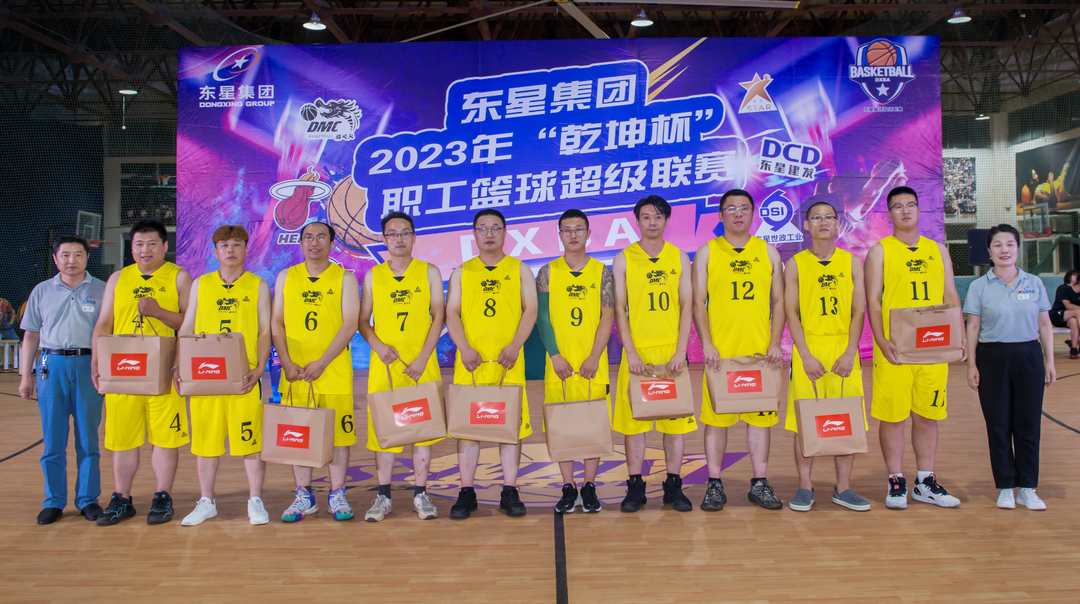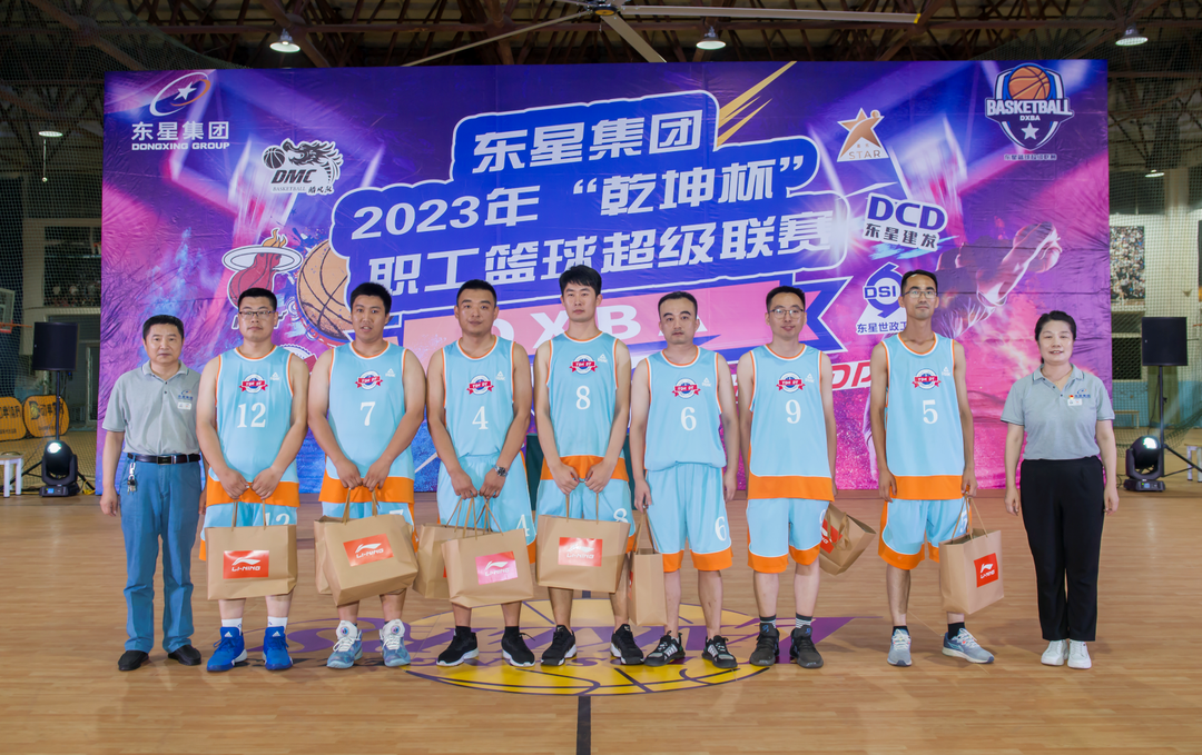 在頒獎(jiǎng)環(huán)節(jié),集團(tuán)公司副總經(jīng)理陳剛宣讀了東星集團(tuán)2023年“乾坤杯”職工籃球超級(jí)聯(lián)賽獲獎(jiǎng)團(tuán)隊(duì)名單:星光隊(duì)、管路隊(duì)、YSD隊(duì)分獲冠、亞、季軍;YSM隊(duì)獲得第四名;皓風(fēng)隊(duì)、夢(mèng)幻隊(duì)、星石隊(duì)、夢(mèng)之隊(duì)、建發(fā)電氣隊(duì)、熱火隊(duì)獲得優(yōu)秀獎(jiǎng);建發(fā)電氣隊(duì)獲得優(yōu)秀組織獎(jiǎng)。集團(tuán)公司董事長(zhǎng)、總經(jīng)理于大偉,集團(tuán)公司副董事長(zhǎng)、副總經(jīng)理厲強(qiáng),集團(tuán)公司副總經(jīng)理陳剛,集團(tuán)公司工會(huì)主席李金霞、集團(tuán)公司人力資源部部長(zhǎng)高克忠分別為所有獲獎(jiǎng)球隊(duì)頒發(fā)了獎(jiǎng)品。當(dāng)于大偉董事長(zhǎng)親手將“乾坤杯”交到星光隊(duì)隊(duì)長(zhǎng)劉偉手中時(shí),現(xiàn)場(chǎng)氣氛達(dá)到了高潮。