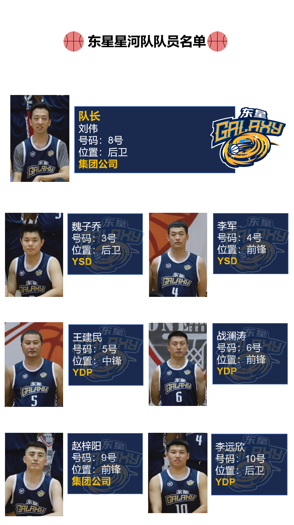 星河隊(duì)隊(duì)員是來自集團(tuán)體系內(nèi)各個(gè)單位的籃球業(yè)余愛好者,隊(duì)員們從DXBA聯(lián)賽中互相競(jìng)爭(zhēng)的對(duì)手變?yōu)椴⒓缱鲬?zhàn)的隊(duì)友,大家高度重視代表“東星”的榮耀,在完成本職工作之余,堅(jiān)持刻苦訓(xùn)練,力爭(zhēng)取得理想成績(jī)。集團(tuán)籃球愛好者可按比賽日程安排前往開發(fā)區(qū)萬(wàn)達(dá)廣場(chǎng)南側(cè)停車場(chǎng)內(nèi)籃球場(chǎng)觀賽。