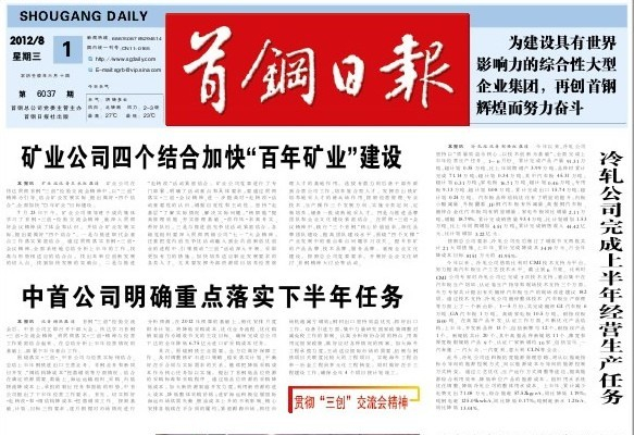 在8月1日發(fā)表的日報(總第6037期)頭版,刊登了題目為《正確的發(fā)展戰(zhàn)略是實現(xiàn)企業(yè)長遠(yuǎn)發(fā)展的法寶》的文章,廣泛宣傳、介紹東星集團(tuán)在開展“三創(chuàng)”活動中的典型經(jīng)驗,總公司網(wǎng)站同日轉(zhuǎn)載。