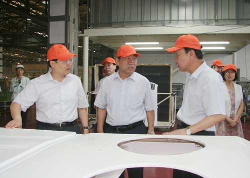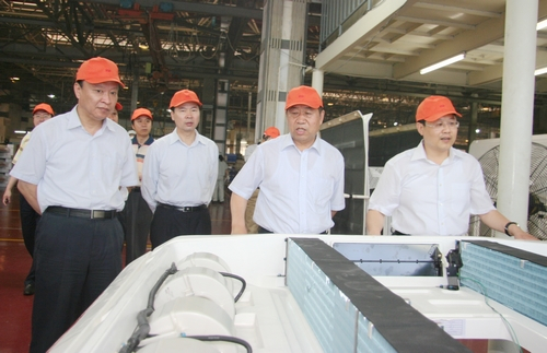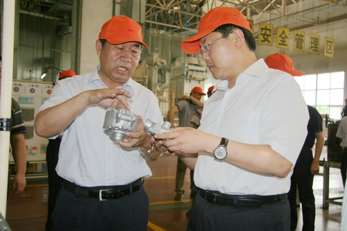 在YSD車用空調(diào)生產(chǎn)現(xiàn)場(chǎng),王市長(zhǎng)聽取了東星集團(tuán)董事長(zhǎng)、總經(jīng)理杜寶棟關(guān)于企業(yè)發(fā)展情況和車