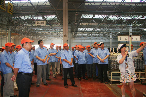 上圖:觀摩團(tuán)在油缸軸生產(chǎn)車間