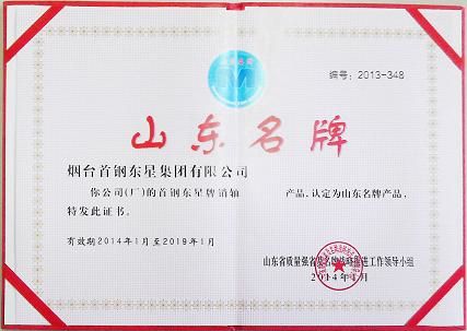 “東星”注冊商標(biāo)的銷軸產(chǎn)品獲得山東省名牌產(chǎn)品稱號