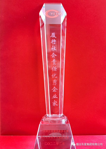會(huì)上表彰了2021年度優(yōu)秀企業(yè)和優(yōu)秀企業(yè)家、金融業(yè)先進(jìn)單位和先進(jìn)個(gè)人、業(yè)達(dá)杰出人才和優(yōu)秀人才工作者。煙臺東星集團(tuán)有限公司被授予2021年度“履行社會(huì)責(zé)任優(yōu)秀企業(yè)(一等獎(jiǎng))”;集團(tuán)公司董事長、總經(jīng)理于大偉被授予2021年度“履行社會(huì)責(zé)任優(yōu)秀企業(yè)家”。