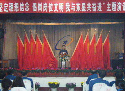 十月十六日,公司在職工活動(dòng)中心舉辦了“堅(jiān)定理想信念倡樹(shù)崗位文明 我與東星共奮進(jìn)”主題演講會(huì),這是公司八月份以來(lái)在全公司團(tuán)員青年中開(kāi)展的“堅(jiān)定理想信念 倡樹(shù)崗位文明 我與東星共奮進(jìn)”主題教育活動(dòng)中的一項(xiàng)重要內(nèi)容,各單位團(tuán)支部和廣大團(tuán)員青年積極組織、廣泛參與,活動(dòng)取得較好效果。