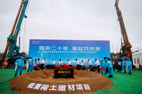 6月28日上午,主題為“同舟二十年,擎起共未來”的煙臺東星磁性材料股份有限公司低重稀土磁材項目奠基儀式在福山高疃臨港工業(yè)園舉行。福山區(qū)委書記李金濤,副區(qū)長王福穎,福山高新區(qū)管委書記宮濤,公司董事長、董事、員工代表等150余人參加了此次儀式。此項目新購置土地約5萬平方米,總建筑面積4.6萬平方米。2023年上半年達(dá)產(chǎn)后,年新增燒結(jié)釹鐵硼永磁材料產(chǎn)能5000噸。