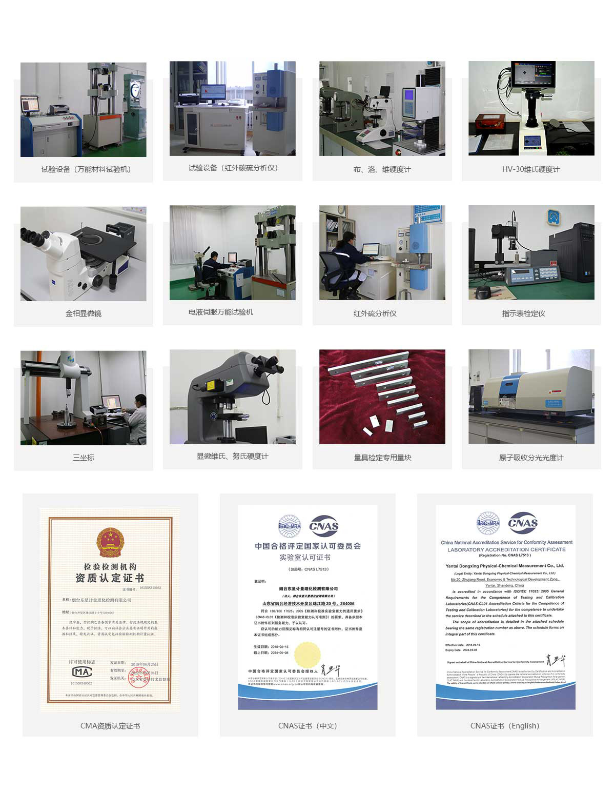 煙臺(tái)東星計(jì)量理化檢測(cè)有限公司成立于1969年,原隸屬兵器工業(yè)部, 國(guó)家二級(jí)計(jì)量單位,兵器工業(yè)二級(jí)理化檢測(cè)機(jī)構(gòu)。2004年至2015年,為適應(yīng)檢驗(yàn)檢測(cè)市場(chǎng)改革的需要,公司先后通過(guò)了山東省質(zhì)量技術(shù)監(jiān)督局檢驗(yàn)檢測(cè)機(jī)構(gòu)資質(zhì)認(rèn)定及中國(guó)合格評(píng)定國(guó)家認(rèn)可委員會(huì)的實(shí)驗(yàn)室認(rèn)可,認(rèn)證范圍涵蓋了金屬材料的物理機(jī)械性能和化學(xué)元素分析等項(xiàng)目,檢驗(yàn)檢測(cè)報(bào)告準(zhǔn)予使用